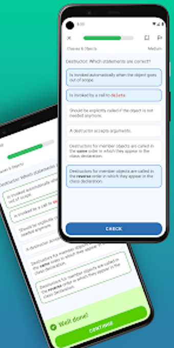 C Quiz é um aplicativo educacional destinado a quem deseja testar e aprimorar seus conhecimentos em C++. Com mais de 415 questões desafiadoras, o app abrange desde conceitos básicos até tópicos avançados, proporcionando uma ampla gama de perguntas em diferentes formatos, como múltipla escolha, entrada de texto e seleção de código. Além disso, cada resposta vem acompanhada de explicações detalhadas, facilitando o aprendizado e a compreensão das melhores práticas de programação.